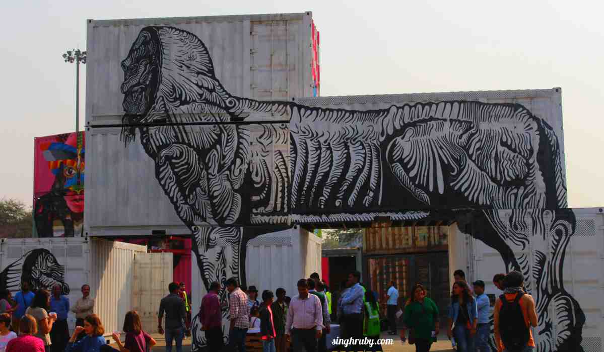 Saturday was completely dedicated to quench the creative thirst. I spent the whole afternoon wandering in and around ICD (Inland Container Depot) at Tughlakabad, Okhla. Street Art Festival (ST+ART) celebrated the biggest and grandest event for the street art and graffiti lovers. It offered a peek into incredible work of artists from all over the world. Though the show is on till 6th March but for now let me take you on a virtual walk of the show. Here is how the walk through painted containers went at WIP – The Street Art show.