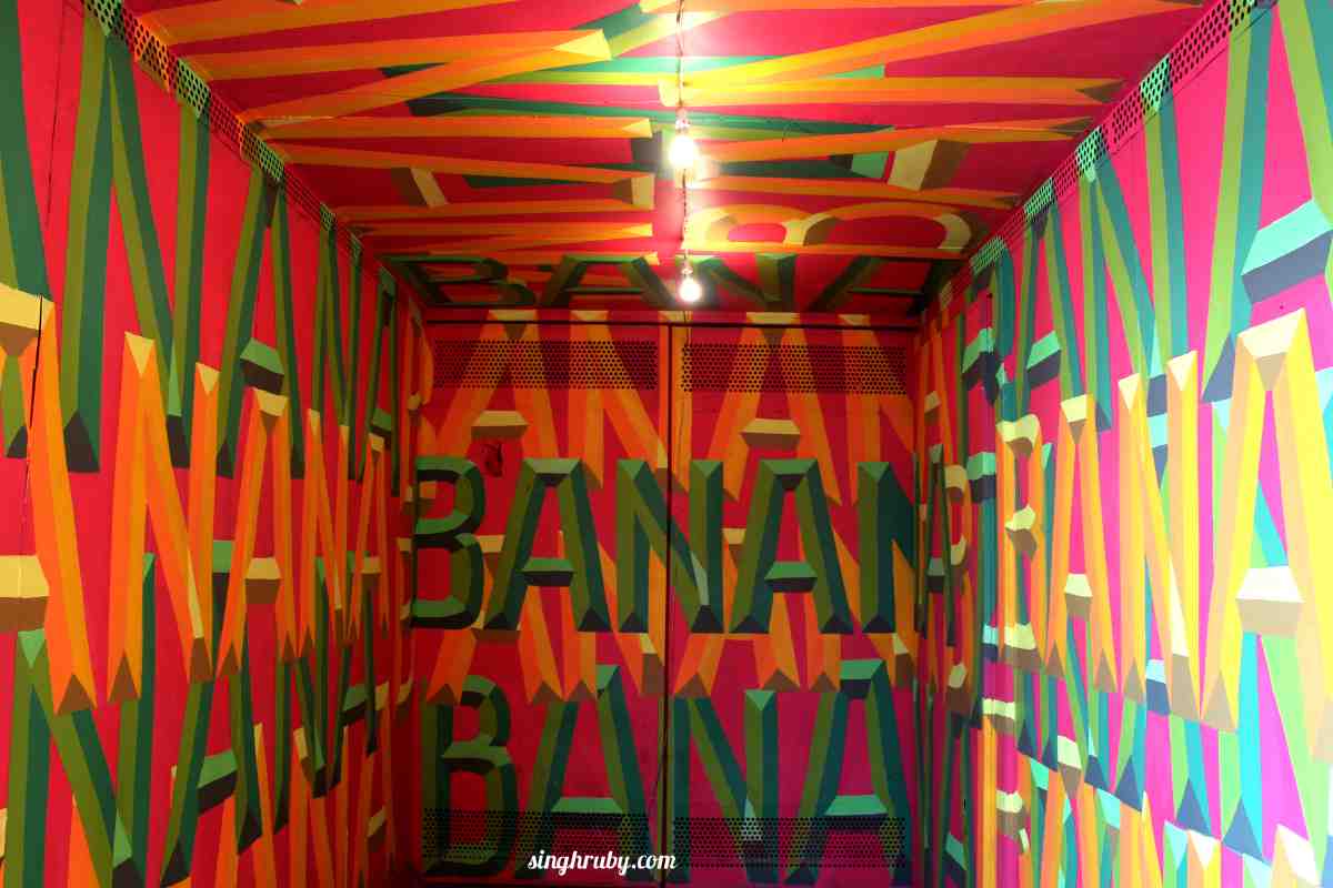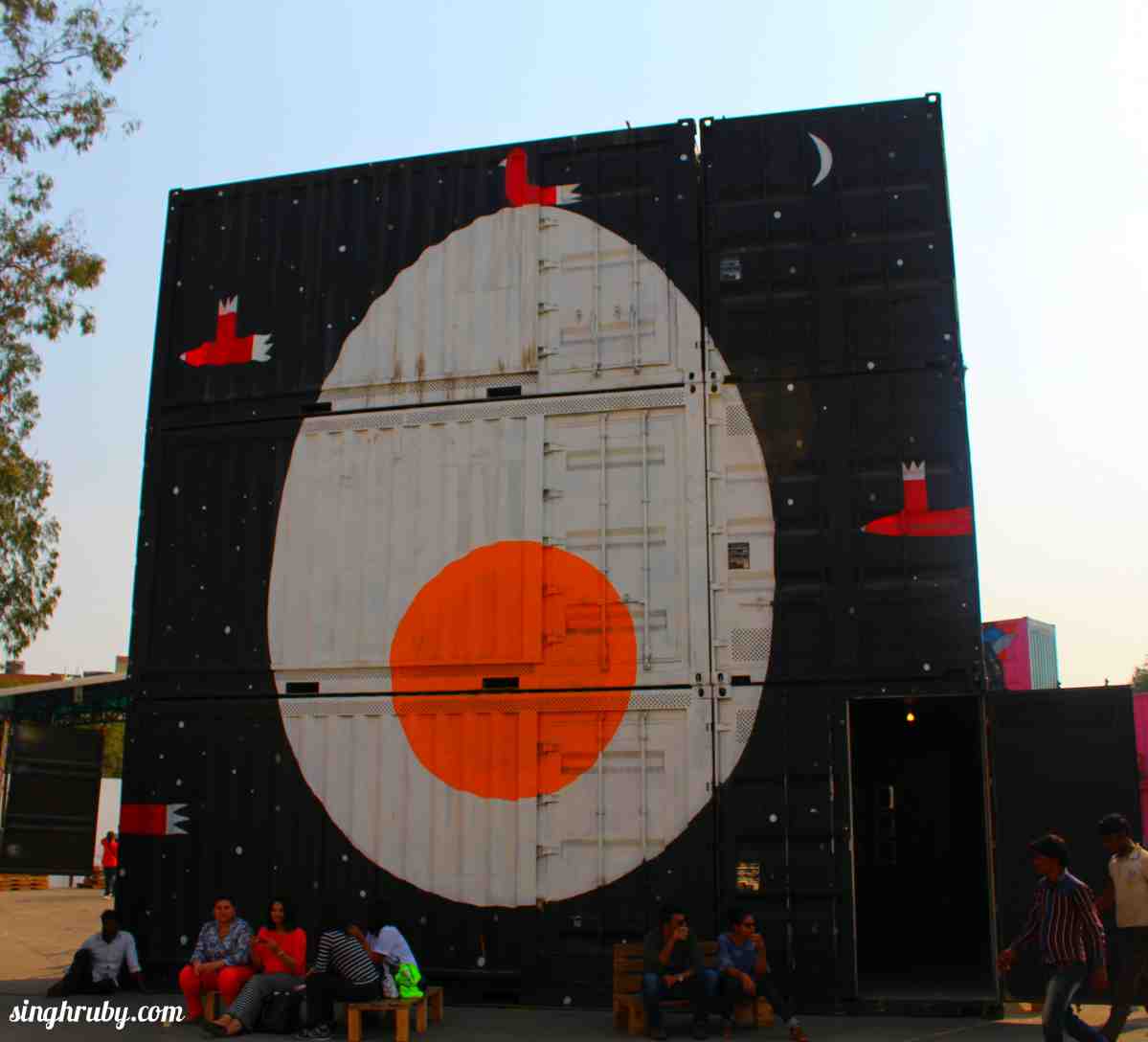 This piece was by an artist from France named “Lek & Sowat” and was titled as “Going Bananas”. The containers were essentially used for shipping bananas all over the country. The idea behind this installation was something which was created by an Indian tribe who have their own language which is not comprehended by anyone else. The bamboos represent a layer of protection from the outside world. The text written were immediately erased by water as the artist believed in destroying what they create which makes the text absolutely illegible.