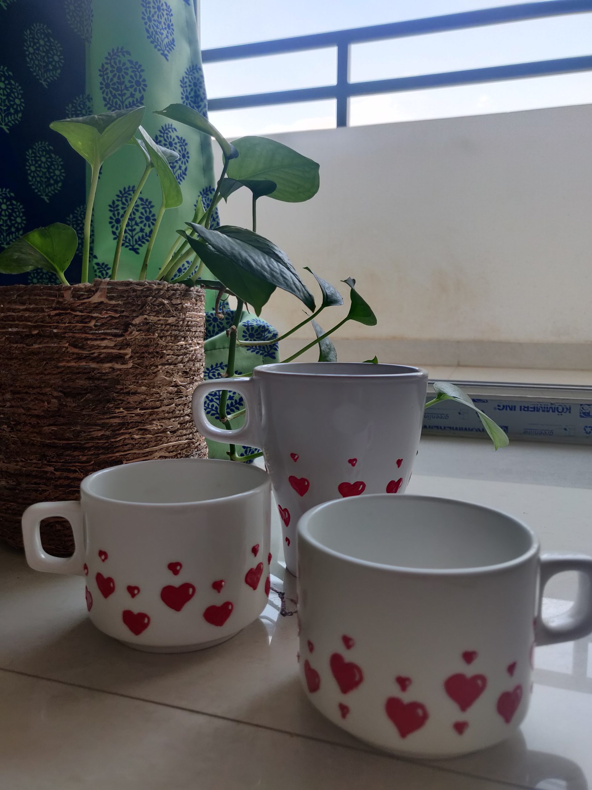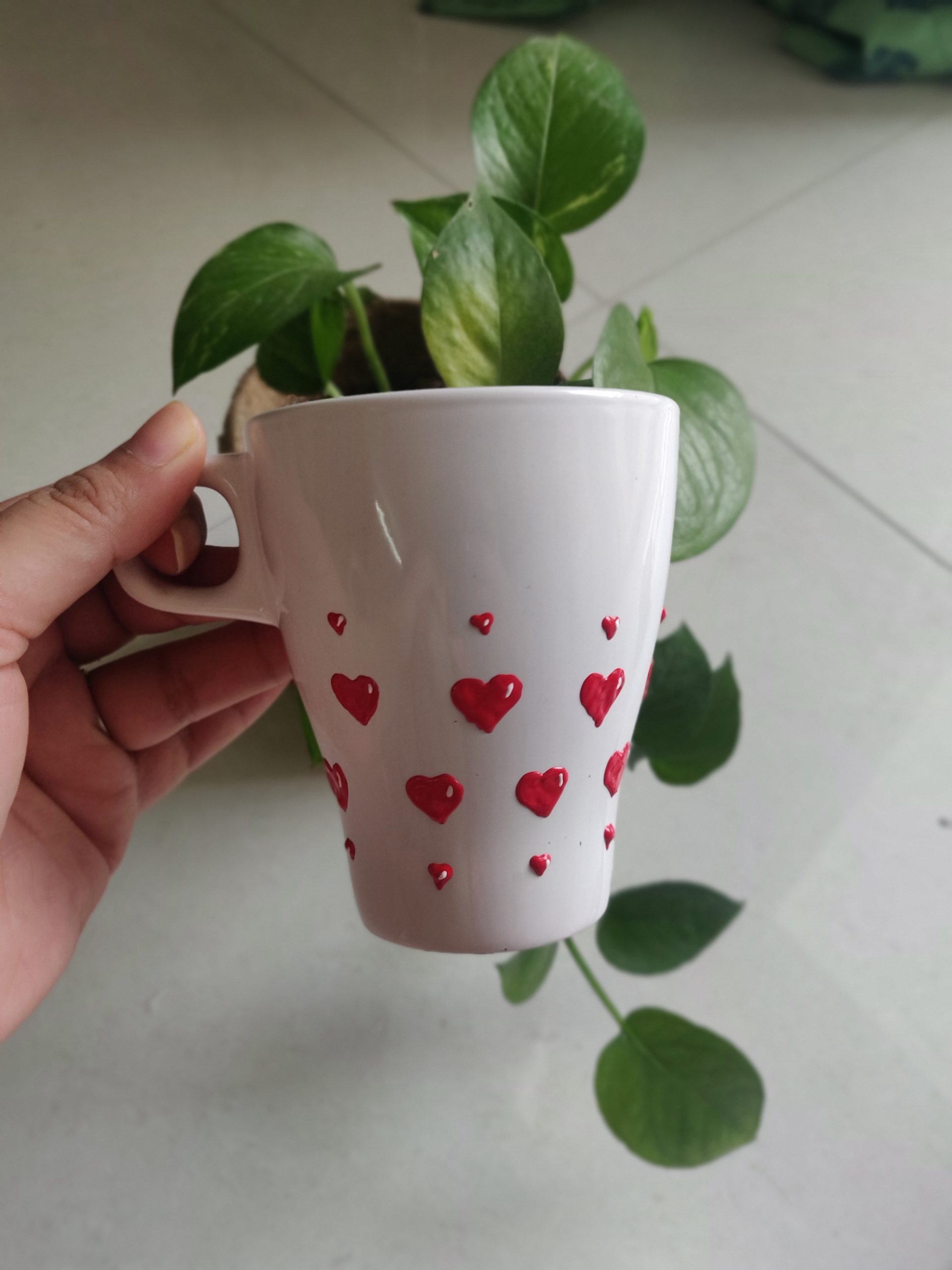 The meeting was the only highlight of the day. I have never done/attended anything like this in my life. Post afternoon I painted little hearts on one of the mugs that I had. We used 3D outliners and they are permanent in nature. Once it dried, I sprayed varnish over it and it is now ready to use for everyday purposes.