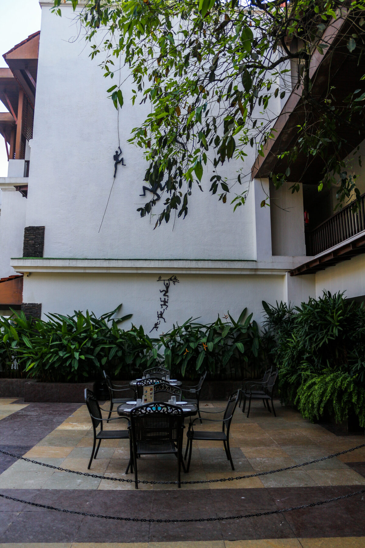 After comfortably settling in the suite my itchy feet took me out in the property premises almost immediately. I might have said it hundred times already but Rhythm is green beyond words. I walked through a canopy which was covered with creepers with flowers, I don’t remember any other resort where I have done that. Every corner of the resort has some art pieces, some are made of wood, some metal and some were even imported from other countries. I spent most of my time just walking around the property and glancing at these art pieces.